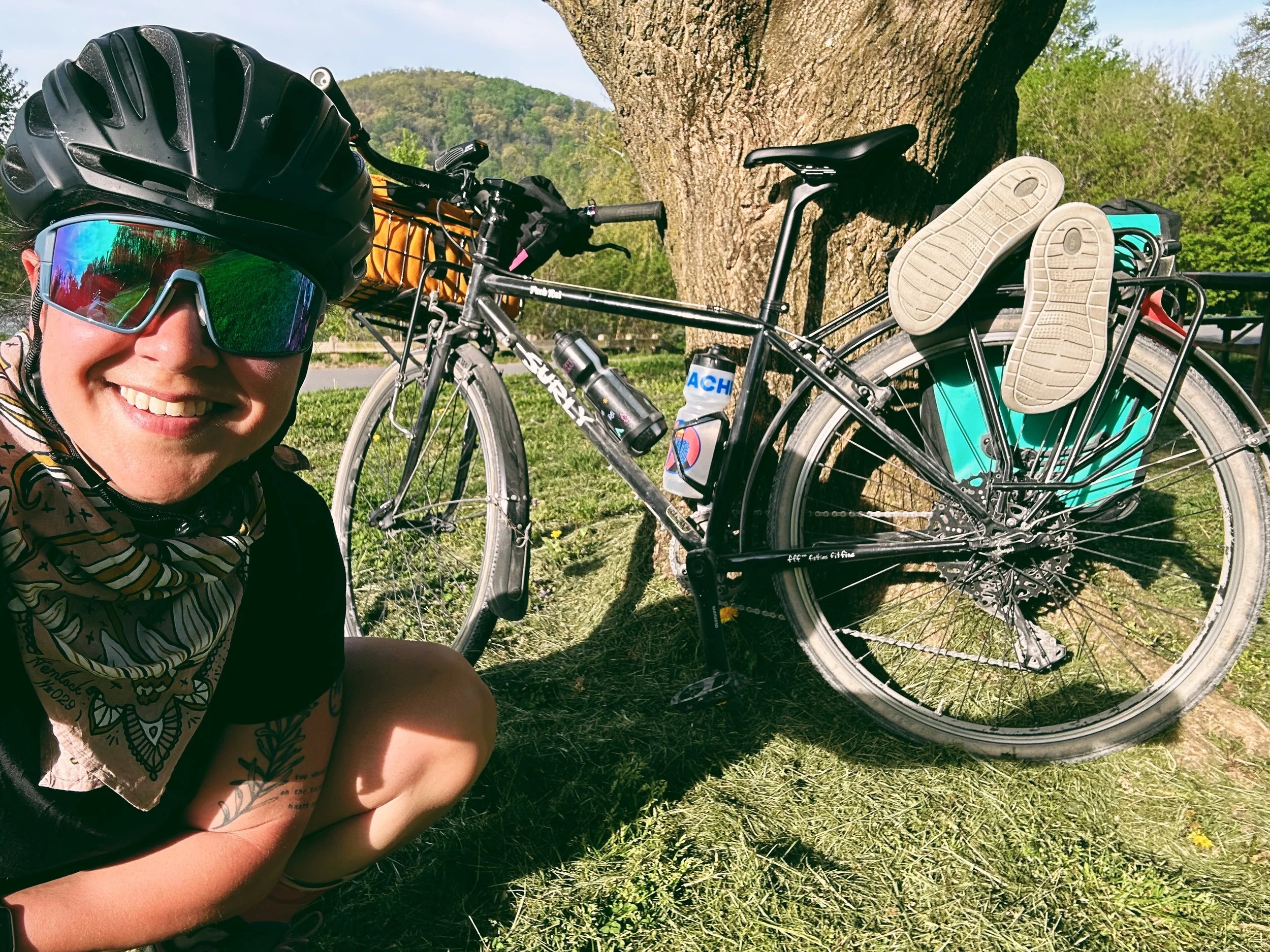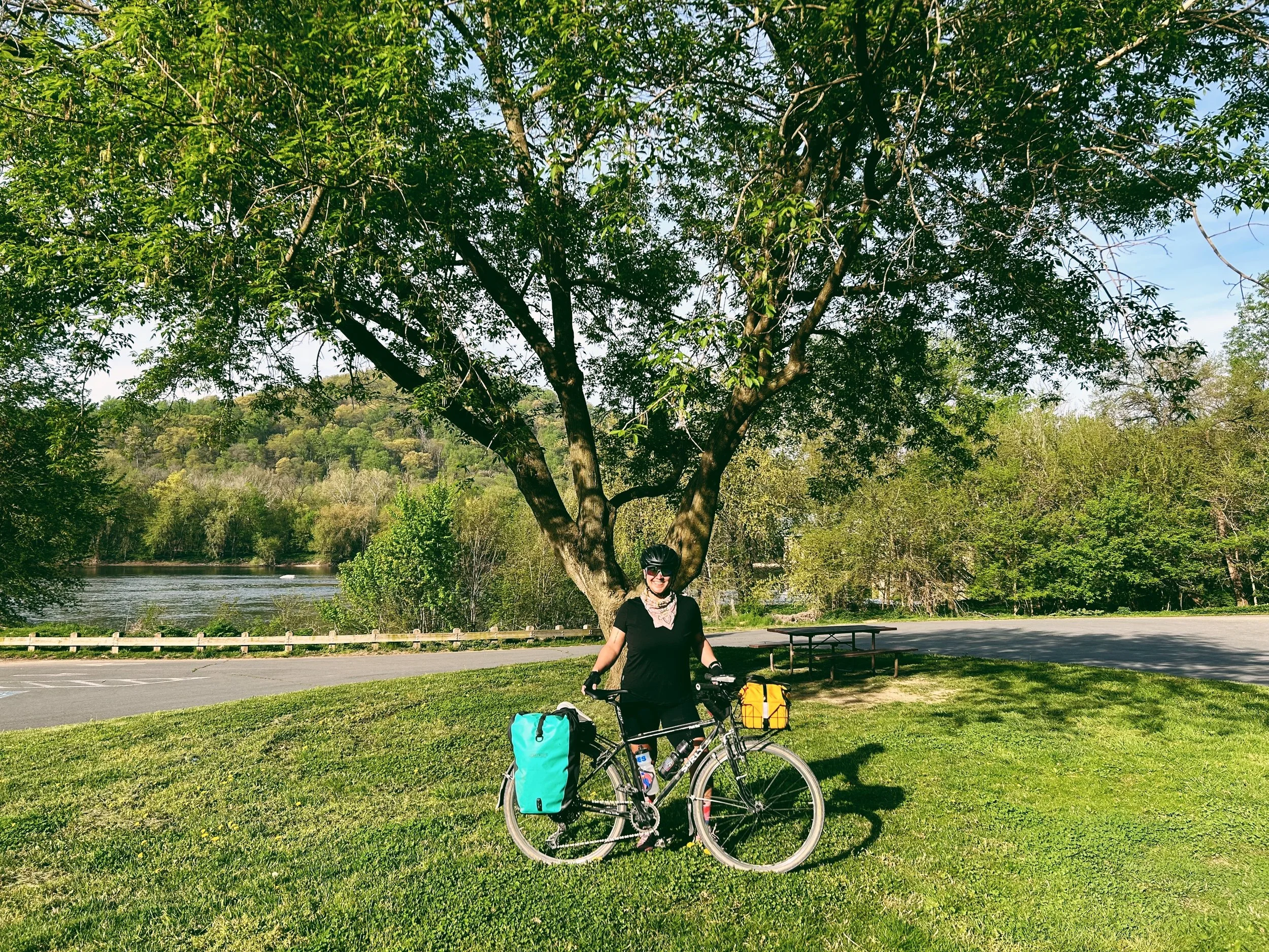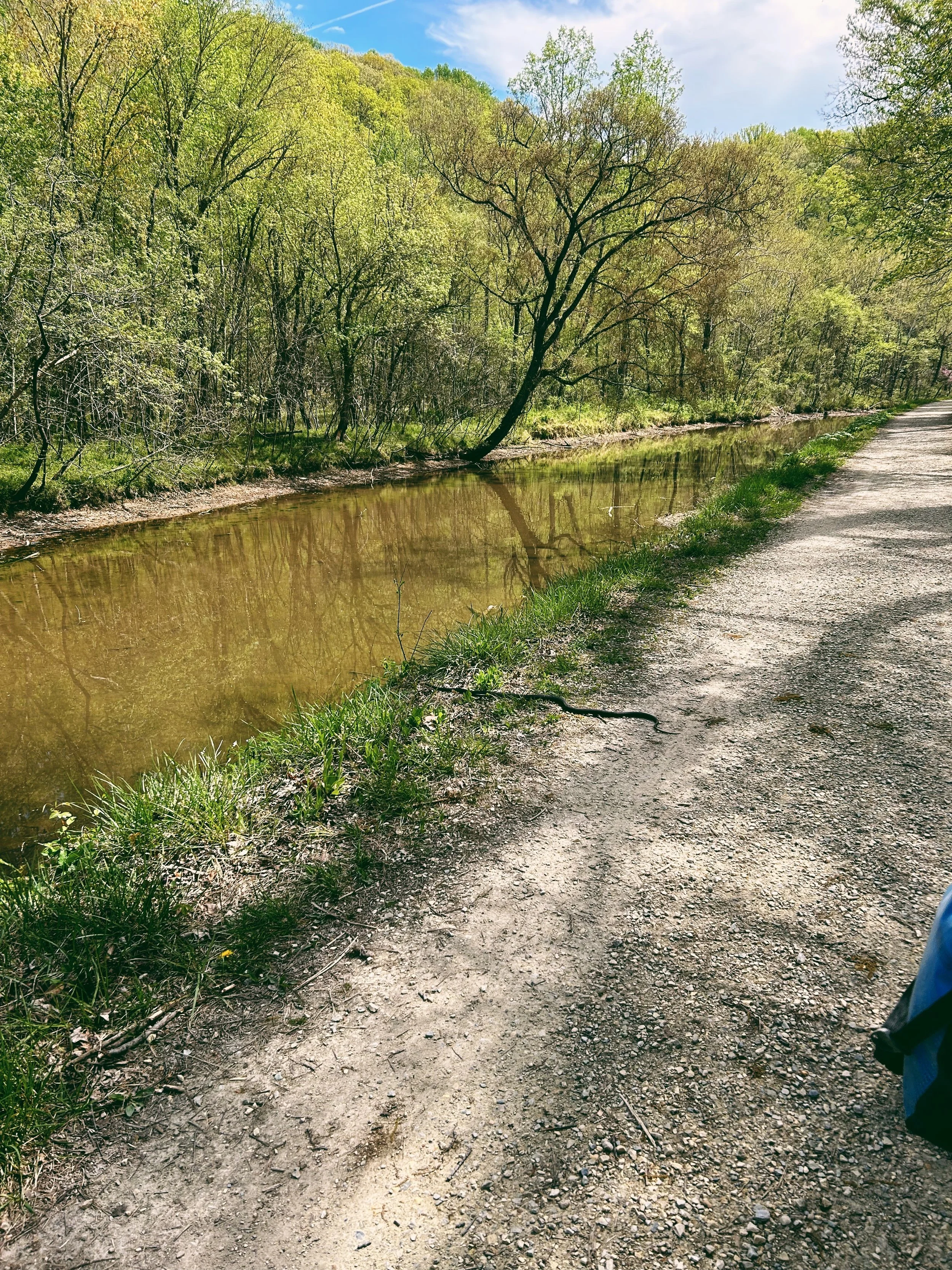 And with that, we finished our final rest of the tour. It was just another twenty miles back to DC, but we still managed to squeeze in one last bit of excitement: we had a VERY close encounter with a snake that I was convinced Polly was going to ride right over! She didnβt realize it was a snake until they very last moment but no parties were injured, and we gave it some space as it slithered its way off the trail and into the water.