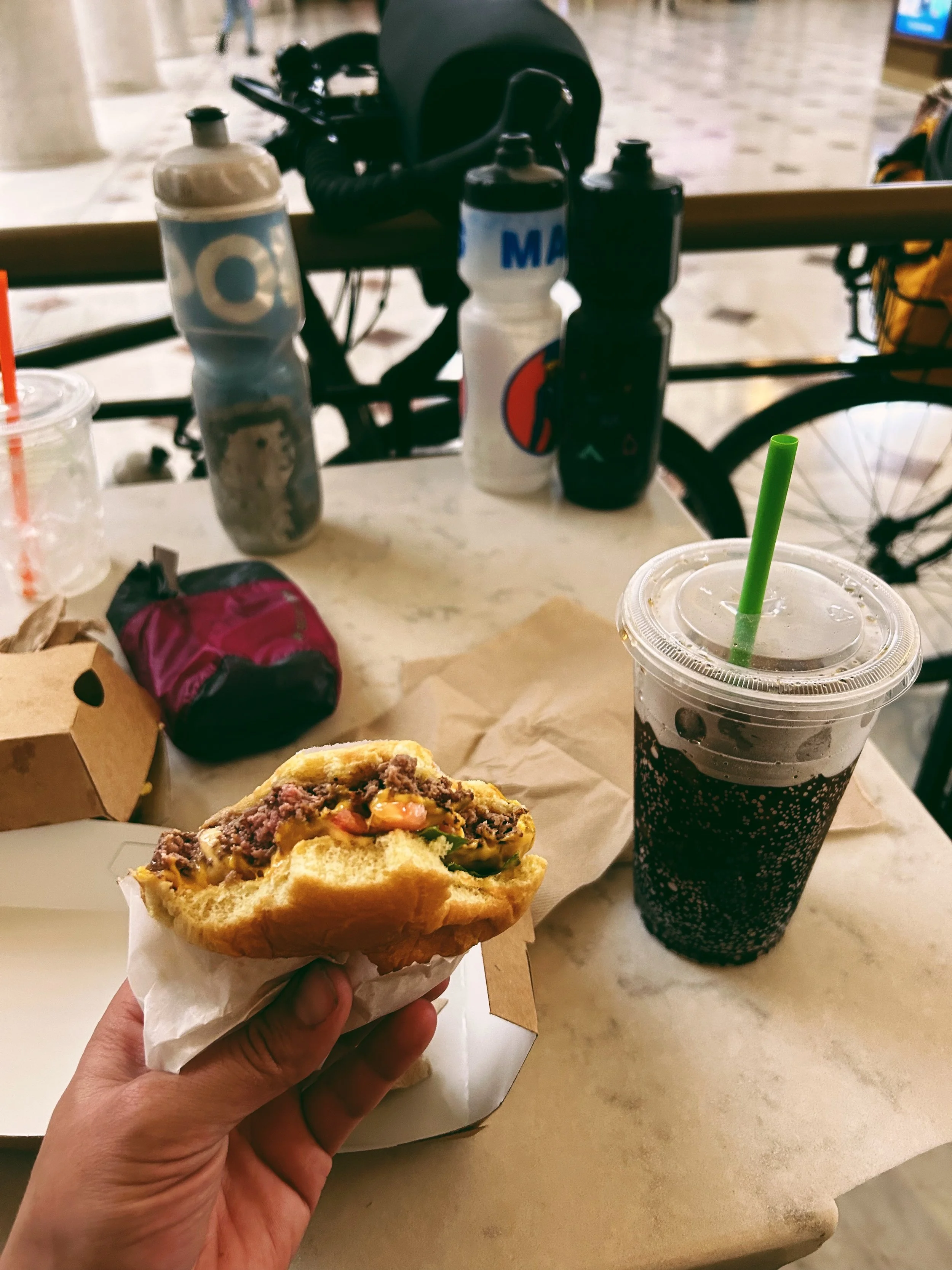 We hustled back with enough time to try and catch an earlier train. We made it in time, but ultimately missed out on one of the last two available tickets. In the end, that worked out for us because we now had plentyyyy of time to clean up, change out of our dirty kits, and address all of the dust. Oh, and to eat, duh.